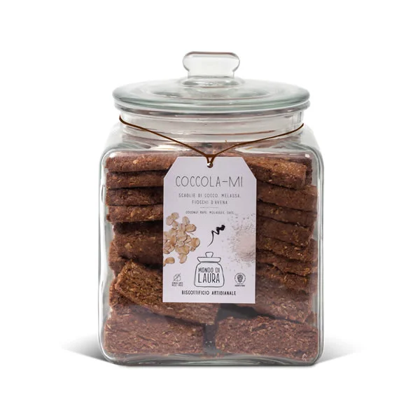 INGREDIENTS: WHEAT flour type “0” OATMEAL 17%, vegetable oils and fats (coconut oil, cocoa butter, sunflower oil, olive oil), coconut rape 14%, granulated sugar, cane sugar, water, EGGS, molasses 4%, rising agent: baking soda.